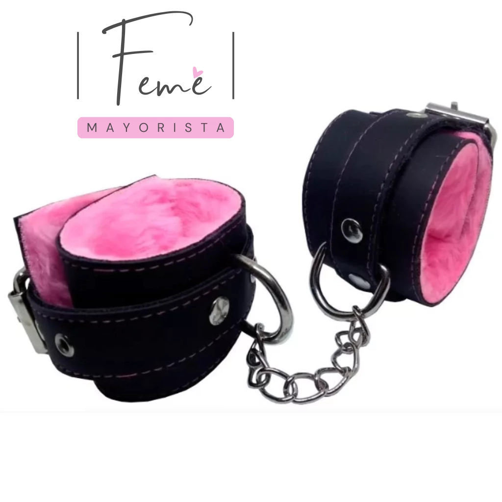 Elaboradas en cuero sintético, mas una cubierta interior de peluche muy suave, ideal para que tus muñecas no se lastimen y puedas disfrutar con plena confianza y seguridad. Unidas en el medio por un mosquetón ultra resistente que te permitirá usarlas para secciones extremas de sado. No intentes escapar porque te resultará imposible.